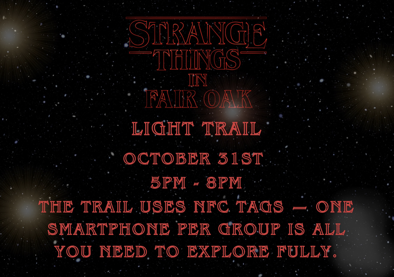 There’s going to be some Strange Things in Fair Oak soon. When they appear you’re invited to travel the trail of light and tap a smartphone on each NFC tag.